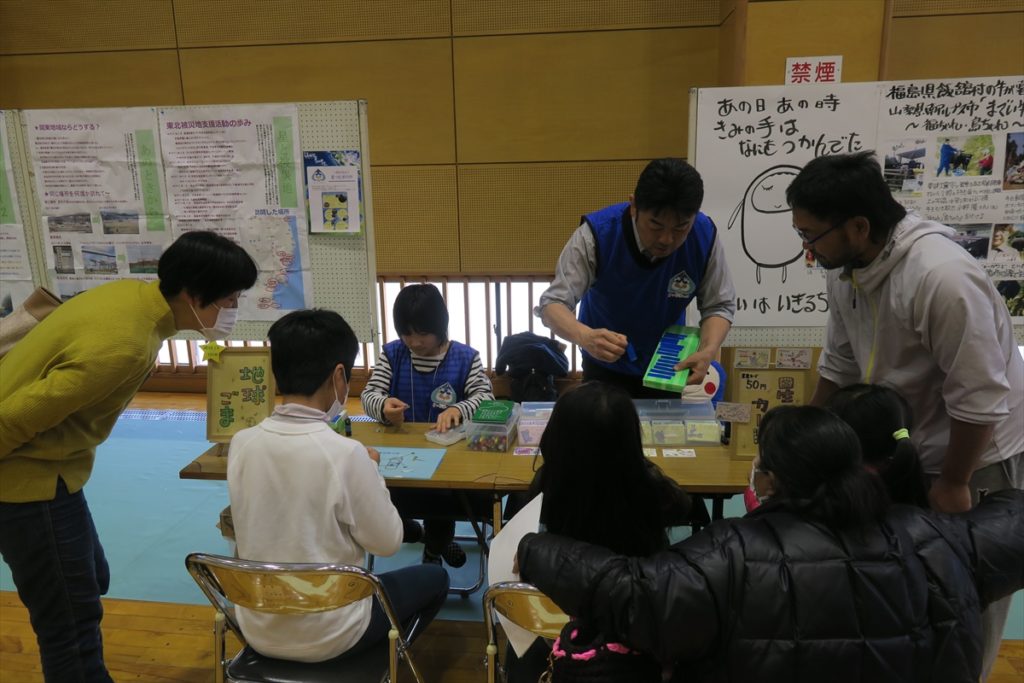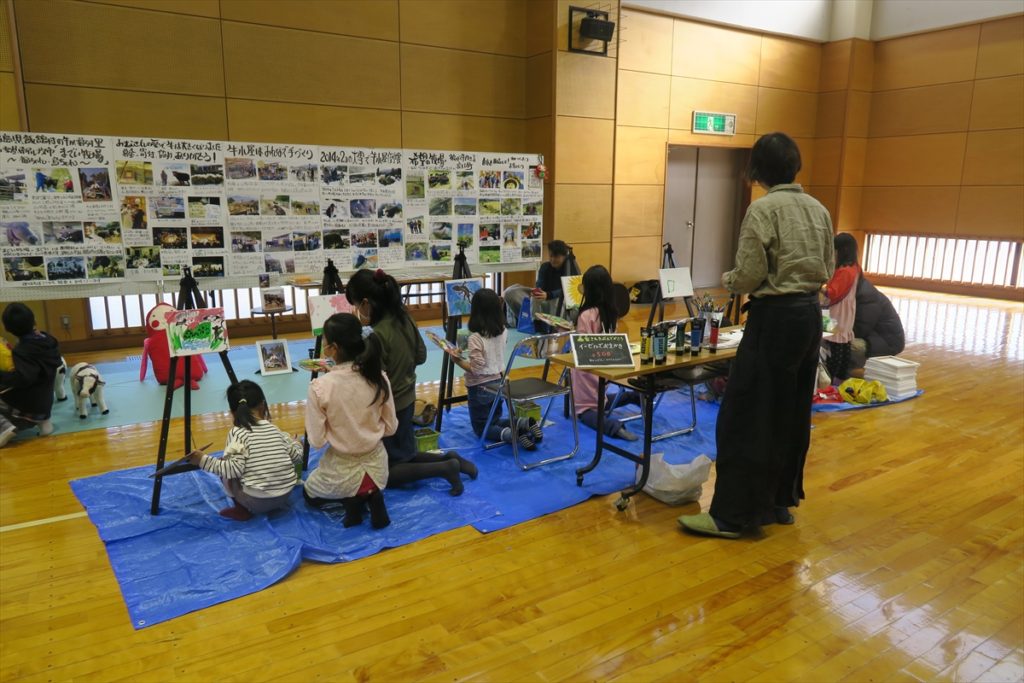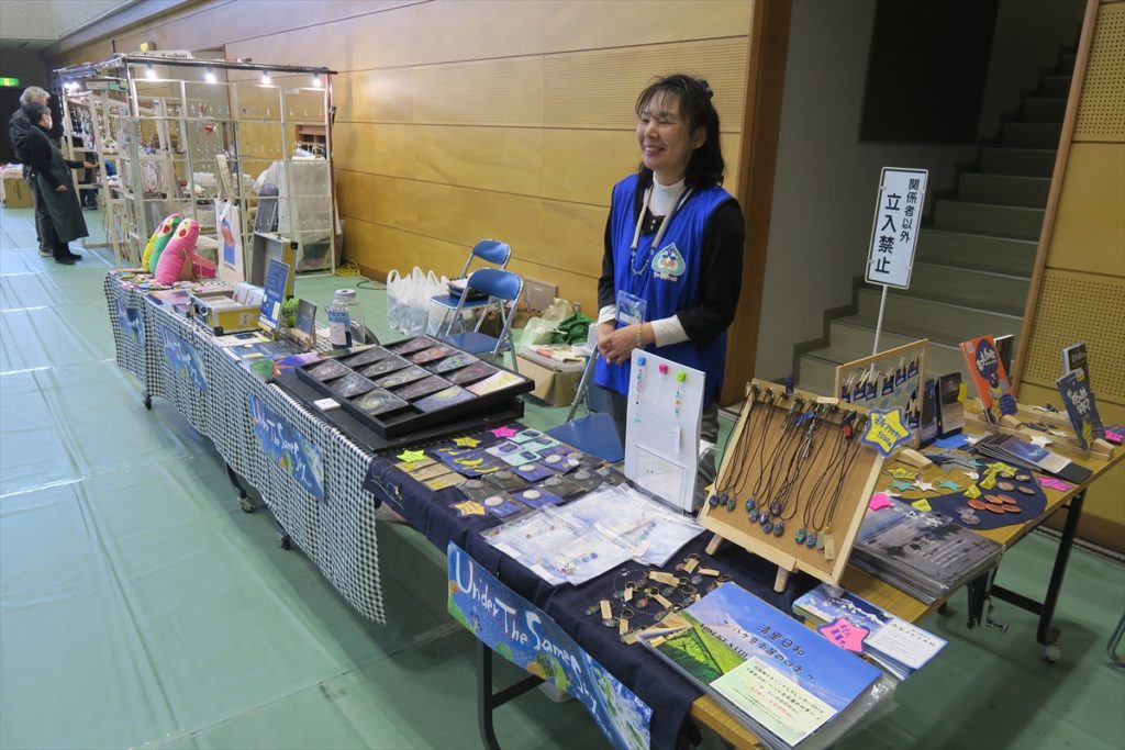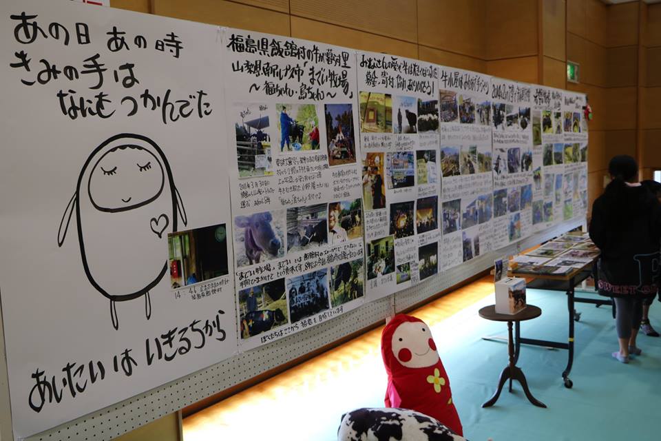 甲府市総合市民会館の格技場では、7mドームでのメッセージコンサート、岩崎けんいちさんによる、「福ちゃん、島ちゃん」(飯舘村から山梨にきた牛さん)の物語が描かれる展示、羽中田桂子さんによる、「画家さん気分で絵を描こう」、きらめ樹さんの展示とワークショップ、星つむぎの村の復興応援の活動紹介展示および、星つむぎの村と結びつきの強い「閖上の記憶」の展示とDVD上映。