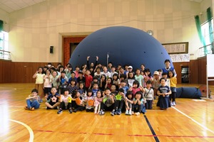 プラネタリウムとワークショップ(ポップアップカードのプラネタリウム)を交代で2回。プラネタリウムは、ライトダウンやら地球からの発進やら火星の落下やら、そのたびに大歓声があがり狂喜乱舞状態。でも、宇宙の果てから帰るときには、みんなじっと映像を見つめ、故郷の地球の姿を見つめていました。