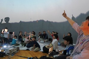 午後からは地域の方向けの投影。ご家族づれやお友達どうしなど、住民の方が30人ほどいらしてくださいました。中には、「テレビで見ました。」と、日本のチカラを見てくださった方や、北斗七星の動きについて聞きたいと、ご自身でかかれた詳細なスケッチを持ってこられた方も。