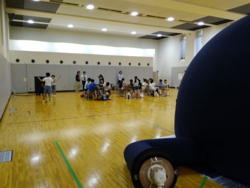 8月31日(土)、埼玉県ふじみ野市が中心になっておこなっている「ふじみ野子ども大学」が、文京学院大を舞台に開催され、プラネタリウムとワークショップを行いました。ふじみ野子ども大学は、ふじみ野市と、文京学院大が連携しておこなっている事業です。今年の4月に、文京学院大の福祉学科の新入生歓迎イベントに呼ばれ、プラネタリウムを行ったご縁でした。 この日は、星つむぎの村のプラネタリウムは、このふじみ野で、高橋が、鳥取県南部町で跡部が、埼玉県内の病院で野田が、とトリプルイベントとなっており、ふじみ野は、高橋一人がお邪魔し、ワークショップは、実行委員のみなさまが手助けしてくださいました。