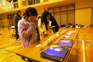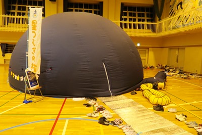 プラネタリウムは、親子で60名以上が入ってぎっしり満員。満天の星に歓声をあげたり、宇宙旅行に興奮したり。「テレビで見て、いつか見たいと思っていました」という保護者の方もいらっしゃいました。